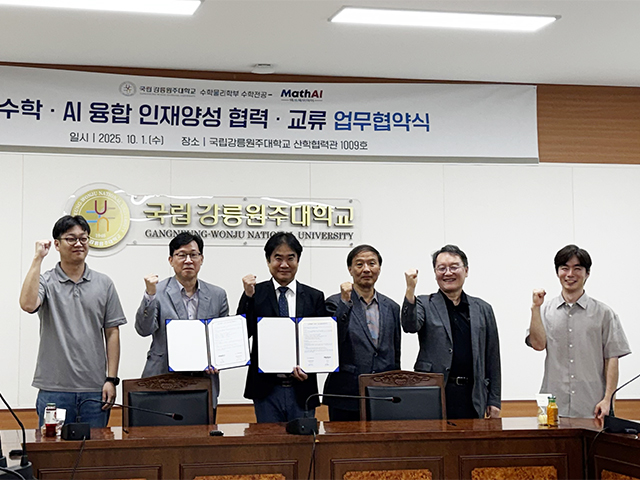 우리대학 수학물리학부(학부장 손성익) 수학전공은 10월 1일(화), 인공지능 전문기업 MathAI(주식회사 매쓰에이아이)와 수학·AI 융합 인재 양성 협력·교류를 위한 업무협약(MOU)을 체결했다.